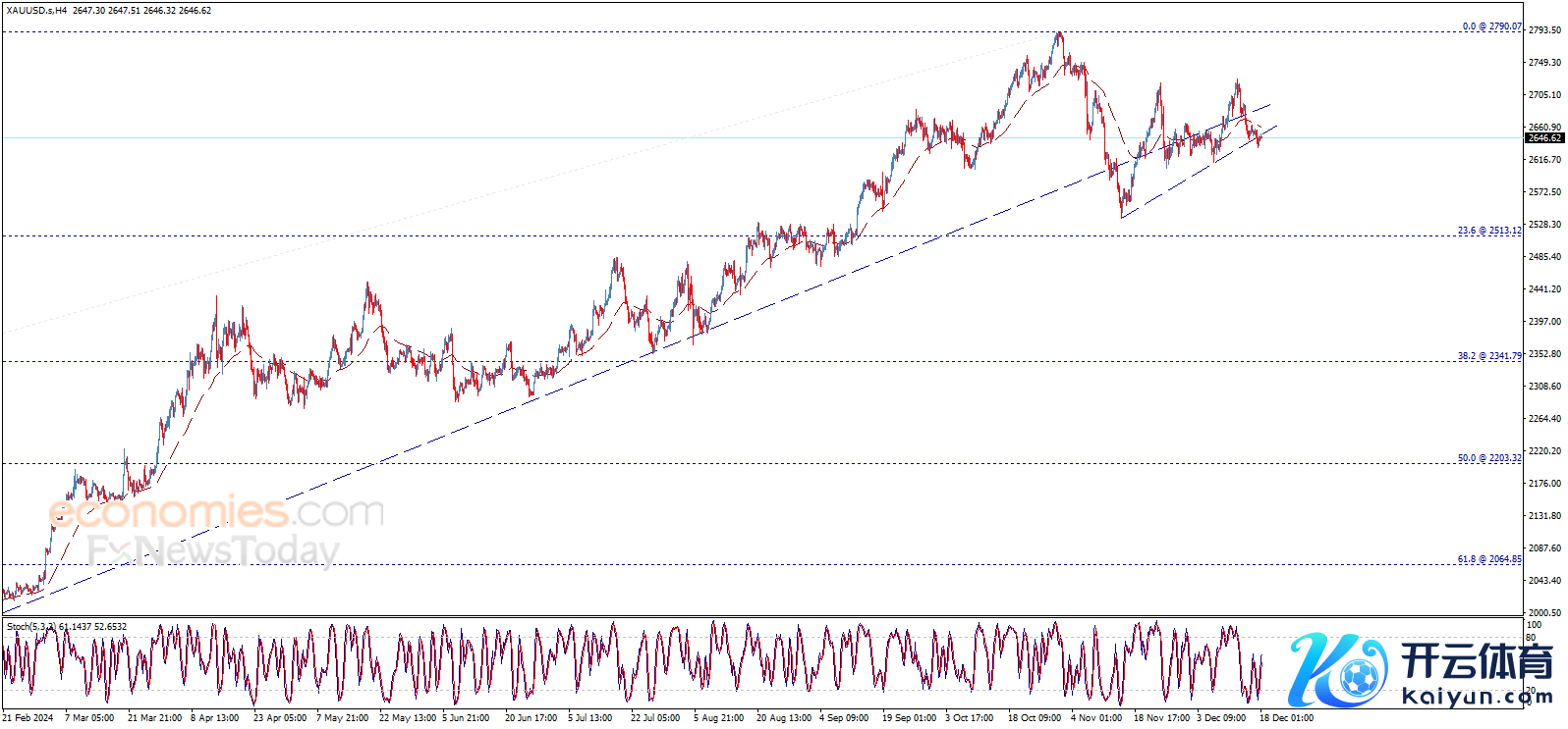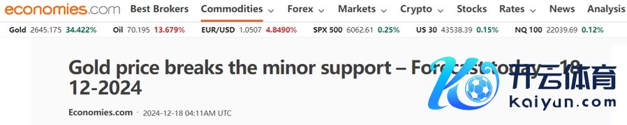 24K99讯 周三(12月18日)亚市尾盘,现货黄金基本握稳,金价当今位于2645好意思元/盎司隔邻。着名财经资讯网站Economies.com周三最新撰文云开体育,对日内黄金本事远景进行分析。
