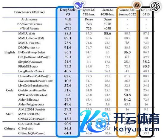 在微软、Meta、Google都在奔着10万卡集群去作念大模子训诫时,DeepSeek在2000个GPU上,花了不到600万好意思金和2个月的时期,就已毕了对皆GPT-4o和Claude 3.5 Sonnet的测试规则。