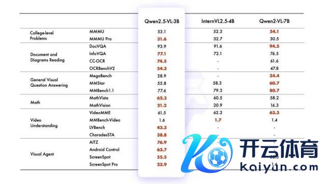 另外,在较小的模子方面,Qwen2.5-VL-7B-Instruct 在多个任务中越过了 GPT-4o-mini,而 Qwen2.5-VL-3B 行为端侧 AI 的后劲股,越过了之前版块 Qwen2-VL 的 7B 模子。
