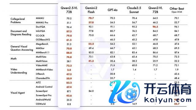 据官方先容,在旗舰模子 Qwen2.5-VL-72B-Instruct 的测试中,它在一系列涵盖多个限制和任务的基准测试中证实出色,包括大学水平的问题、数学、文档招引、视觉问答、视频招引和视觉 Agent。Qwen2.5-VL 在招引文档和图表方面具有上风,况且巧合行为视觉 Agent 进行操作,而无需特定任务的微调。