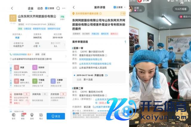 她屡次力推的贵胶堂阿胶居品,背后的厂家 2023 年的企查查叙述显露,职工仅有戋戋 3 东说念主。况兼,这个厂家还因骚动外不雅专利遇到一审二审败诉,被判决朝上市药企山东东阿阿胶抵偿 25 万元。