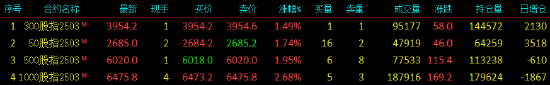 2025年3月6日,股指期货全线高涨,沪深300股指期货(IF)主力合约涨1.49%,上证50股指期货(IH)主力合约涨1.74%,中证500股指期货(IC)主力合约涨1.95%,中证1000股指期货(IM)主力合约涨2.68%。